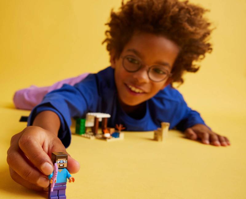 Tato stavebnice pro malé stavitele od 6 let je zcela první sada s biomem pouště ze světa Minecraftu. Steve a výprava do pouště děti inspiruje k postavení domku v nehostinném prostředí, který poté musí ubránit před létajícím Přízrakem. V této přestavitelné herní stavebnici pro děti od 6 let najdete 3 figurky LEGO Minecraft, včetně Stevea, a domek v poušti. Součástí sady jsou také proslulé prvky ze hry Minecraft, jako je pracovní stůl, táborák a řada dílků pro sestavení pouště. Jedná se o skvělý dárek pro fanoušky Minecraftu, který přímo vyzývá k tvořivým dobrodružstvím a akčním bitvám, když základnu napadne létající Přízrak s pohyblivými křídly. Zcela poprvé se ve stavebnici LEGO Minecraft objevuje mládě velblouda a nechybí ani nová verze Steveovy tváře. Sadu lze kombinovat s dalšími stavebnicemi z řady LEGO Minecraft (prodávají se samostatně) a představuje skvělý dárek pro děti i milovníky videoher.