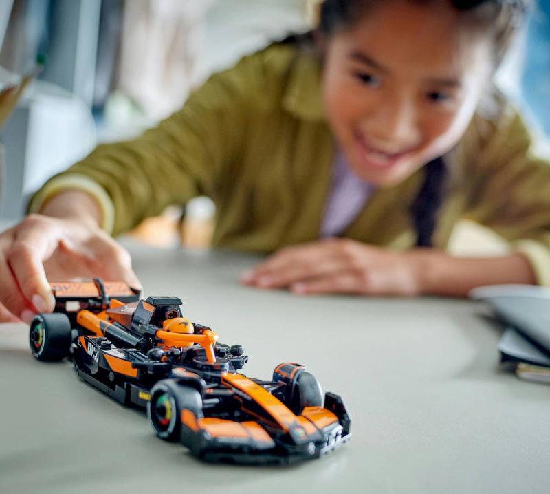 LEGO 77251 - Závodní automobil formule McLaren F1 Team MCL38 z produktové řady LEGO SPEED CHAMPIONS. Kvalitní dětská plastová stavebnice.Užijte si napínavé závody Formule 1 se stavebnicí Závodní auto McLaren F1® Team MCL38 pro kluky a holky od 10 let. Děti i dospělí sběratelé aut si postaví a vystaví závodní model F1 s designovými detaily inspirovanými skutečným vozem, který soutěžil ve Formuli 1 v roce 2024. Tento model vozu F1 má kokpit, který lze otevřít zvednutím svatozáře, zadní křídlo, rovnoběžníkovou nápravu, polepy sponzorů a širší zadní pneumatiky s nápisem "Pirelli". Součástí vozu je také minifigurka jezdce v outfitu McLaren s okřídlenou helmou, kterou můžete umístit do kokpitu a užít si s ní akční závody.