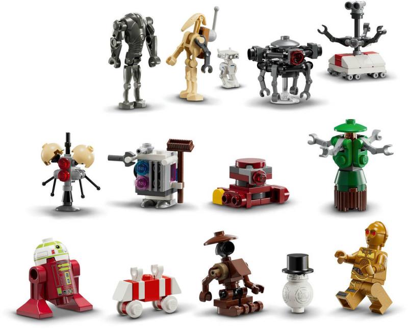 LEGO STAR WARS Adventní kalendář pro rok 2025, rozkládací, s herní plochou.Dopřejte dětem hodiny zábavy při vytváření vlastní droidí dílny a vymýšlení fantasy příběhů s oblíbenými postavami se stavebnicí Hvězdné války: Adventní kalendář 2025. Tento adventní kalendář s jedinečnými modely za každým okénkem představuje skvělý vánoční dárek pro kluky, holky a fanoušky od 6 let. Objevte BB-8 v kostýmu sněhuláka, Jawu, Myšího droida a Lékařského droida ve vánočním oblečení a spoustu dalších droidů. Tato sběratelská stavebnice LEGO Star Wars obsahuje také figurku LEGO droida Babu Frika a propojitelné mini modely, se kterými vytvoříte droidí dílnu. Nechybí ani propojitelné vozidlo a jeřáb Jawa, krabice s náhradními droidy navíc... a samozřejmě vánoční stromeček. Tato stavebnice je plná překvapení na každý den, se kterými si během čekání na Vánoc děti i celá rodina užijí hodiny kreativního hraní a zábavy.