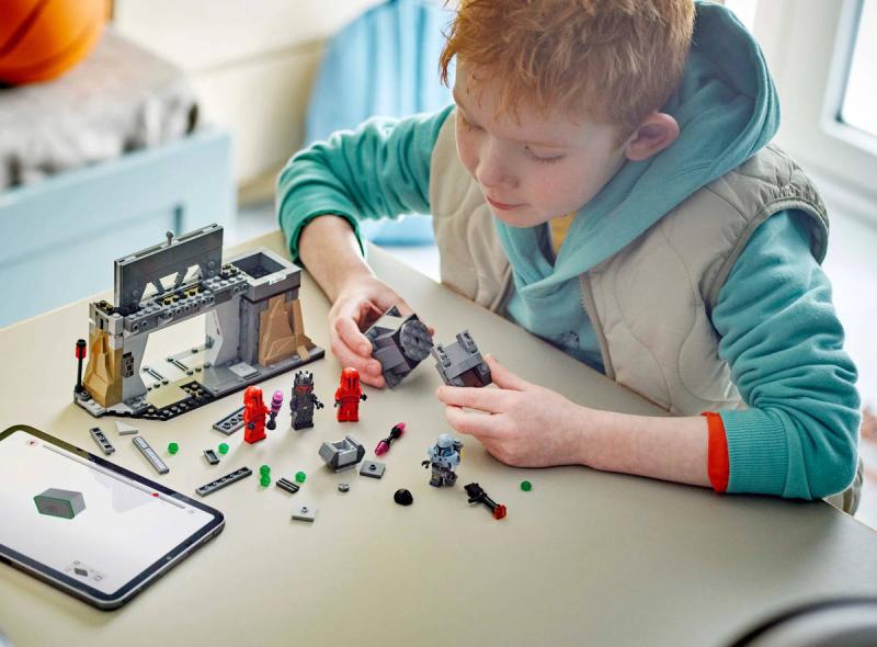 Postavte si se stavebnicí Souboj Paze Vizsly a Moffa Gideona pro kluky, holky a fanoušky od 7 let napínavé scény z 3. řady seriálu Star Wars: The Mandalorian. Tato stavebnice z kostek LEGO představuje parádní fantasy dárekpro děti a součástí je mandaloriánská základna s obrněnými dveřmi se spouští, která se aktivuje při zabouchnutí, ovládací panely a otočnou vystřelovací věž. Nechybí ani 4 sběratelské minifigurky LEGO Star Wars: The Mandalorian, se kterými si můžete přehrávat souboj Paze Vizsly a Moffa Gideoa (v brnění Dark troopera) a imperiální pretoriánskou stráží, a navíc doplňky, jako je jetpack Moffa Gideona a úložný box s termálním detonátorem pro kreativní hraní.