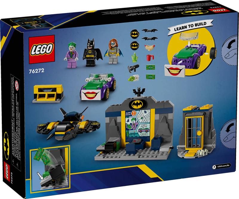 LEGO 76272 - Batmanova jeskyně a Batman, Batgirl a Joker z produktové řady LEGO SUPER HEROES - Dětské plastové kostky v krabici.Hledáte dobrodružný superhrdinský dárek s Batmanem pro děti od 4 let? Tato stavebnice s Batmanovou jeskyní je pro vás to pravé! Sada Batmanova jeskyně a Batman, Batgirl a Joker je plná praktických a tvořivých aktivit a pomáhá dětem zvýšit sebevědomí a zlepšit soustředění a schopnost řešit problémy. Tato úžasná hračka neobsahuje jen Batmanovu jeskyni, ale také 3 minifigurky – Batmana, Batgirl a Jokera –, letadlo Batwing se skládacími křídly, autíčko, vystřelovač disků, věznicia zábavné doplňky, včetně pavouka svítícího ve tmě. Model má navíc řadu praktických funkcí, jako je katapult se spínačem nebo "vybuchující" dveře vězení. Součástí stavebnice je začátečnická kostka s podvozkem, se kterou se děti hravě pustí do stavění. Nechybí intuitivní návod v podobě zábavného obrázkového příběhu. Pro ještě více digitální zábavy mohou stavitelé přibližovat a otáčet modely ve 3D a sledovat svůj pokrok pomocí zábavné a intuitivní aplikace LEGO Builder. Tato kreativní stavebnicepředstavuje skvělý dárek z řady LEGO Batman pro děti a začínající superhrdiny.