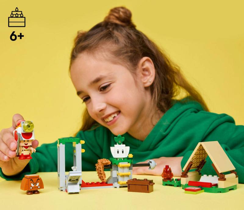 LEGO 72040 - Captain Toad a jeho tábor z produktové řady LEGO SUPER MARIO - Kvalitní dětská plastová stavebnice v krabici.Prozkoumejte tábor Captain Toada a najděte skrytý poklad s tímto zábavným setem LEGO Super Mario pro děti. Stavebnice představuje fantastický dáreček pro kluky, holky a fanoušky od 6 let a obsahuje sestavitelný stan s táborákem pro Captain Toada, skládací most, skryté diamanty a truhlu s pokladem. Nechybí 3 figurky LEGO Super Mario – Captain Toad, Goomba a turnip – a doplňky včetně sestavitelného batohu, krumpáče a pánve, které inspirují ke kreativnímu hraní. Přidejte figurky Mario, Luigi nebo Peach (ze setů 71439, 71440, 71441 nebo 72043 – prodávají se samostatně) a užijte si interaktivní hraní, včetně úžasných digitálních reakcí při skákání na akční prvek stanu a poražení Goomby. Návod na stavění tohoto této stavebnice Nintendo LEGO najdete v krabici nebo v aplikaci LEGO Super Mario. Nenechte si ujít další stavebnice LEGO Super Mario (prodávají se samostatně). Tato stavebnice obsahuje 159 dílků.