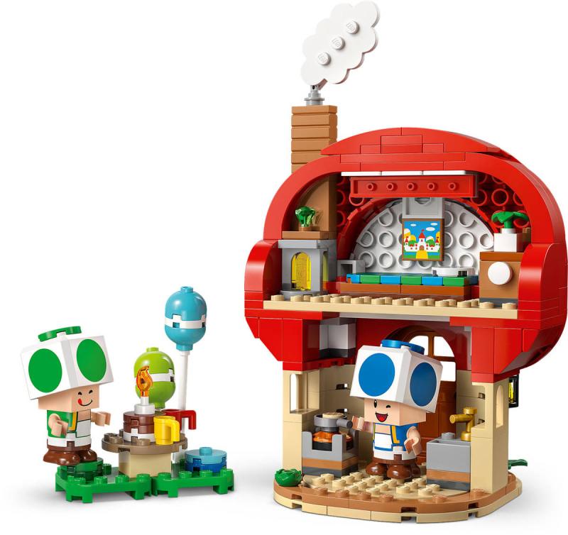 Uspořádejte párty v Toadově domku s touto fantastickou stavebnicí. Úžasný dárek pro kluky, holky a fanoušky od 7 let, který obsahuje propracovaný domek Toada s kuchyní a ložnicí (s obrazem Peachina hradu na stěně) a odnímatelným nábytkem pro snadné hraní. Venku na vás čeká piknikový stůl se sedadly pro figurky Blue Toada a Green Toada, sestavitelný gramofon s otáčecí deskou a doplňky na párty. Přidejte k tomuto setu figurku LEGO Mario, LEGO Luigi nebo LEGO Peach (ze setů 71439, 71440, 71441 nebo 72043 – prodávají se samostatně) a užijte si digitální interaktivní hraní, včetně písniček, které začnou hrát při šlápnutí na akční prvek gramofonu a zvuku zvonku na prahu domu. Návod na stavění této stavebnice Nintendo® LEGO najdete v krabici nebo v aplikaci LEGO Super Mario. Nenechte si ujít další satevbnice LEGO Super Mario (prodávají se samostatně).