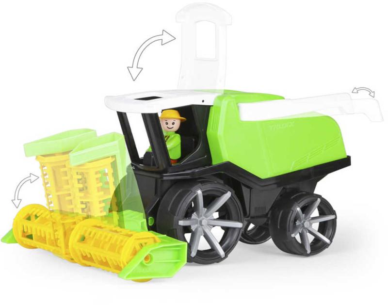 LENA 04536Truxx 2 kombajn s kosou z kvalitního plastu a velmi pevnou stavbou. Plně mechanicky funkční. Obsahuje odklopitelnou kabinu s aktivním panáčkem. Pogumovaná kola s tichým chodem. Žací lišta.
