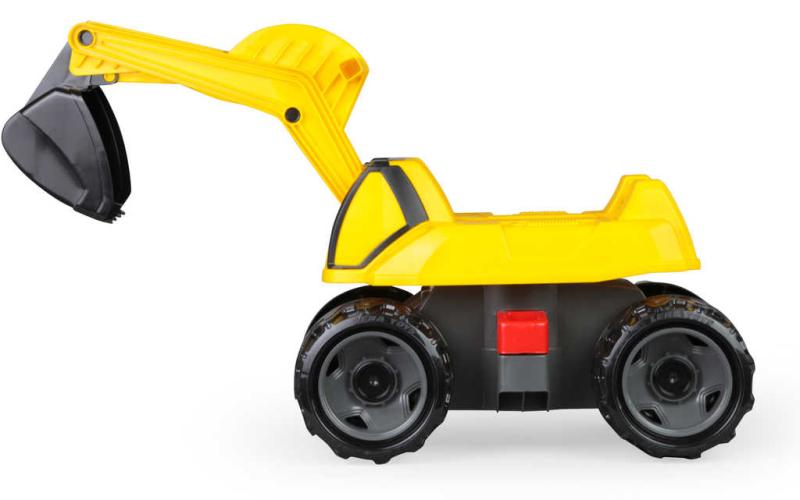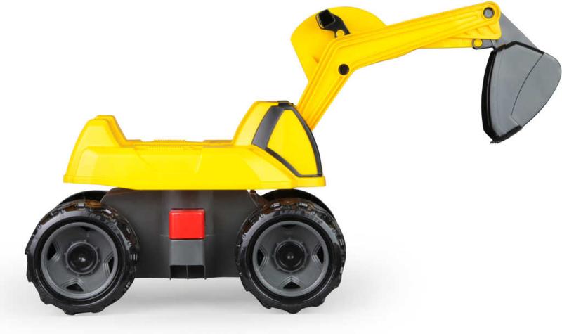Robustní bagr z řady Giga Trucks s velkou plochou pro sezení, 6mm hrubé kovové osky kol. Moderní detailní design. S ramenem je možno kopat do hloubky až 20cm. Otočný podvozek o 360 stupňů. Součástí