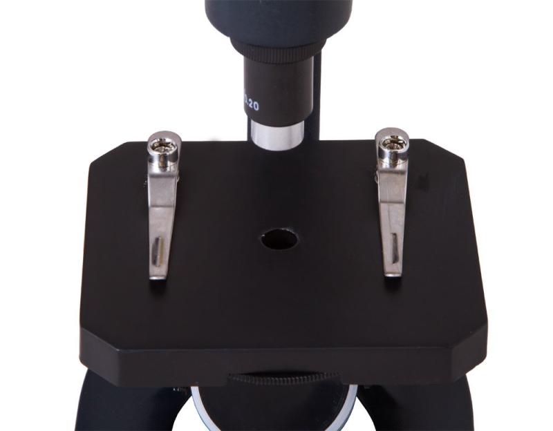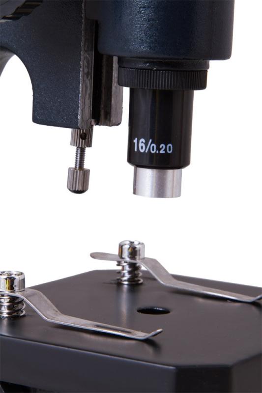 Monokulární mikroskop má jediný achromatický objektiv o zvětšení 16x, který nabízí jasný obraz bez jakékoli chromatické nebo sférické aberace. Hlavice modelu se nachází přímo nad pracovním stolkem, ale pro pohodlné pozorování můžete pomocí ramene mikroskopu hlavici i pracovní stolek naklonit do požadovaného úhlu