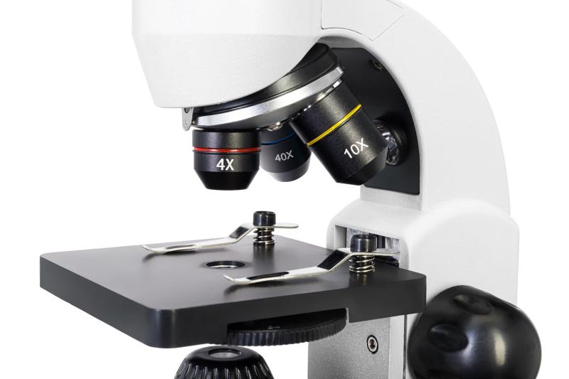 Mikroskop je vybaven třemi objektivy, které nabízí zvětšení 40x, 100x a 400x. Veškeré optické prvky jsou vyrobeny z velmi kvalitního, vysoce transparentního skla.