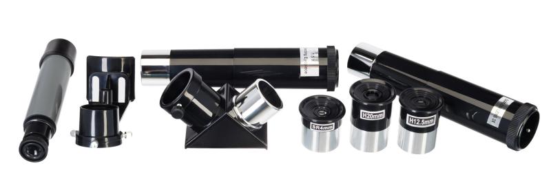 Se 3 různými okuláry (4mm / 12,5mm / 20mm) a Barlowovou čočkou tak dosáhnete nejvyššího možného výkonu, který umožní pozorování astronomických objektů v nejvyšším možném detailu. Díky bohaté sadě příslušenství není nutné do dalekohledu investovat další prostředky, kdy můžete začít s pozorováním ihned po vybalení přístroje z krabice. Pomocí okulárového výtahu lze v případě zájmu namontovat jakékoliv optické příslušenství s průměrem válce okuláru 31,75 mm, takže můžete svoji optickou soustavu dále rozšiřovat a dosáhnout tak ještě lepších výsledků během pozorování.
