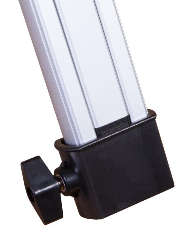Hliníkový statív so zásobníkom na príslušenstvo je stabilný a spoľahlivý. Statív stojí rovno aj na drsnom nerovnom povrchu – môžete ho ľahko prispôsobiť výške a terénu vďaka nastaviteľným nožičkám.