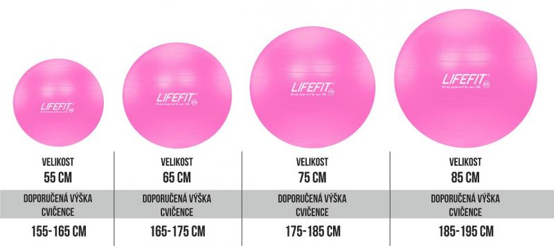Míče LIFEFIT jsou vhodné pro všestranné využití při fitness, kardio a rehabilitačních cvičeních. Míče jsou určeny pro komerční i soukromé využití. - univerzální gymnastický míč - pruměr 65cm - doporučená výška cvičence 165-175cm - maximalní hmotnost cvičence 200kg - materiál vysoce odolné PVC - protiskluzová ochrana povrchu - system ANTI-BURST v případě přetlaku pozvolné uvolňování vzduchu - určeno pro všestranné fitness, kardio a rehabilitační cvičení vhodné pro komerční i soukromé využití