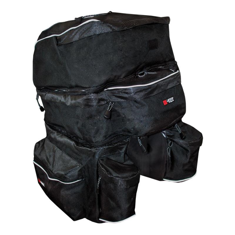 Velká 3dílná cyklistická brašna na nosič Lifefit s variabilním uspořádáním.- 2 velké horizontální kapsy se zapínáním na zip a s možností úplného odepnutí, každou kapsu lze odepnout zvlášť