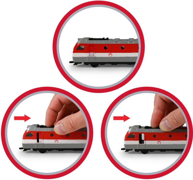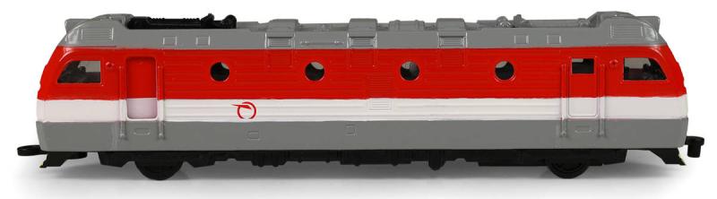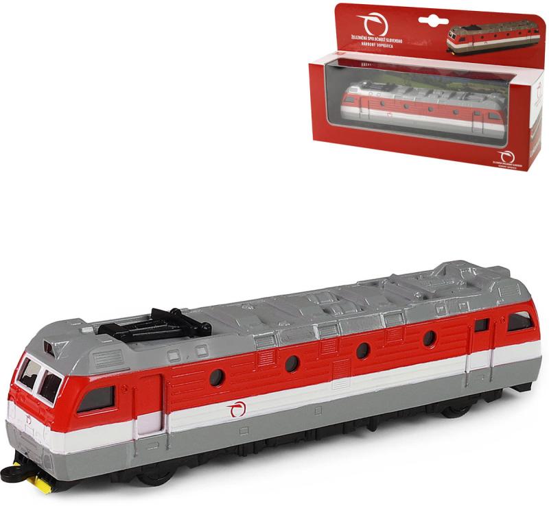 Červená kovová lokomotiva o velikosti 17cm v designu ZSSK Železniční společnost Slovensko, s pohonem na zpětný chod.Originální 17cm dlouhá lokomotiva Železniční Společnosti Slovensko, by neměla chybět v pokojíčku žádnému fandovi vláčků! Tento úžasný kovový model lokomotivy je ideální jako dárek nebo jako sběratelský kousek! Při koupi více kusů je lze jednoduše zapojit za sebou. Má otevírací dveře, které ovládáte manuálně posunutím pantografem na střeše lokomotivy. Lokomotiva jezdí na zpětný chod. Rozchod kolejnice je cca 1,7 cm.
