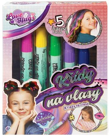 Love and Hugs Křídy barevné dětské na vlasy set 5 barev v krabici