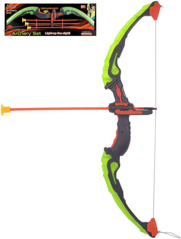 Luk dětský světelný set se 3 šípy na baterie svítí ve tmě plast