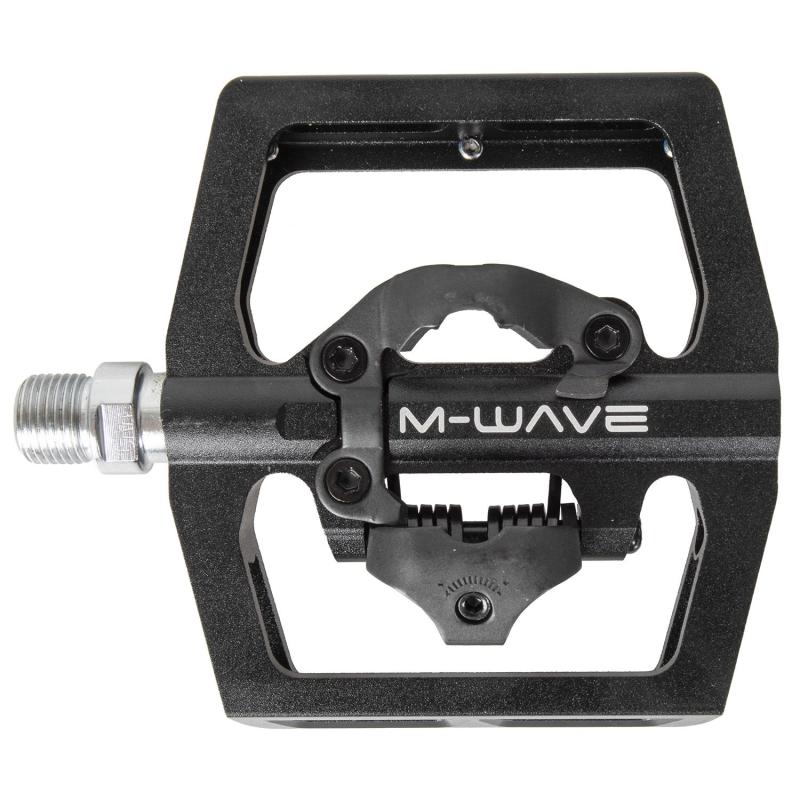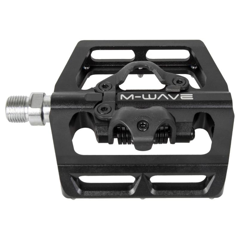 Kombinované pedály M-Wave Freedom Clipless nabízejí praktické řešení pro cyklisty, kteří chtějí využívat výhody nášlapného systému i klasické platformy. Z jedné strany pedálu lze pevně nacvaknout tretry kompatibilní se systémem Shimano SPD, zatímco druhá strana slouží jako stabilní platforma s vyměnitelnými piny, které zajišťují jistý záběr v běžné obuvi.
