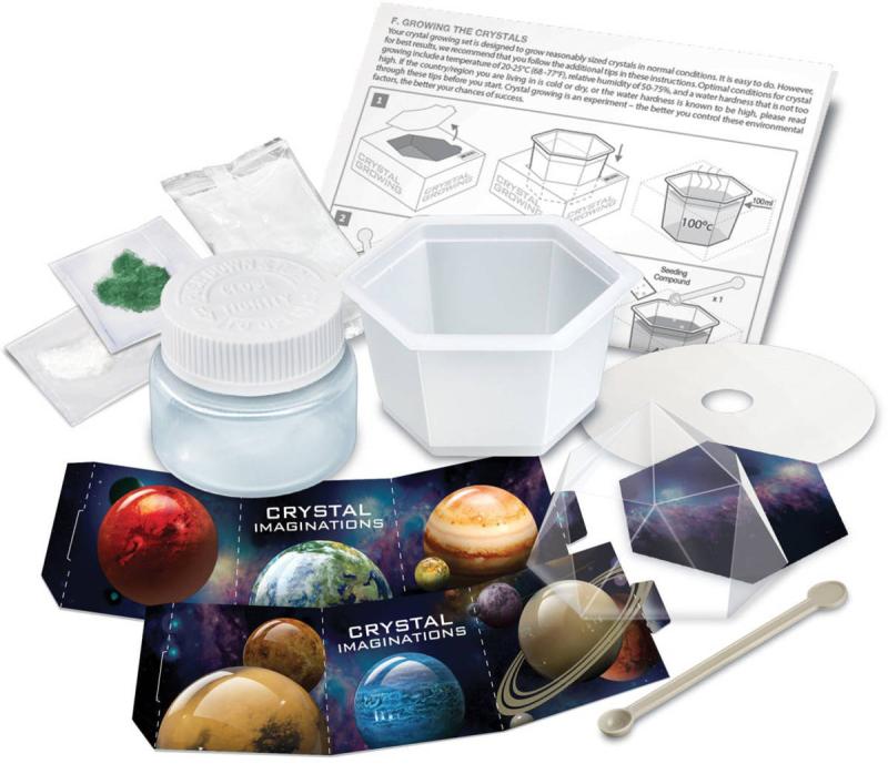 - Stále oblíbenější sady Crystal Imaginations umožňují dětem zkoumat vědecké principy chemie pomocí pokusů s pěstováním krystalů.