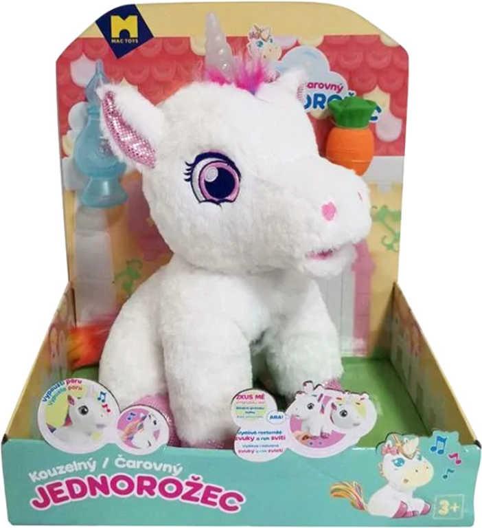 Mac Toys PLYŠ Interaktivní kouzelný jednorožec 25cm na baterie Světlo Zvuk