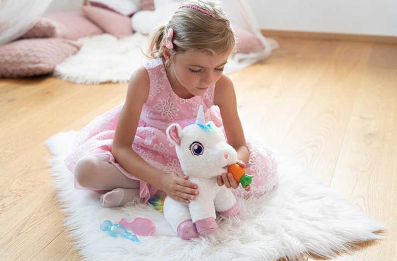 Každá malá holčička si ráda hraje na princeznu z pohádky. Čím jiným, než kouzelným jednorožcem jí toto přání můžete splnit? Seznamte se s interaktivním kouzelným jednorožcem, který bude vaší princezně dnem i nocí tím nejlepším společníkem. Na první pohled holčičky zaujme svou roztomilostí a duhovými barvami. Plyšový jednorožec je krásně měkký, takže s ním může v noci poklidně spát. Při stisknutí