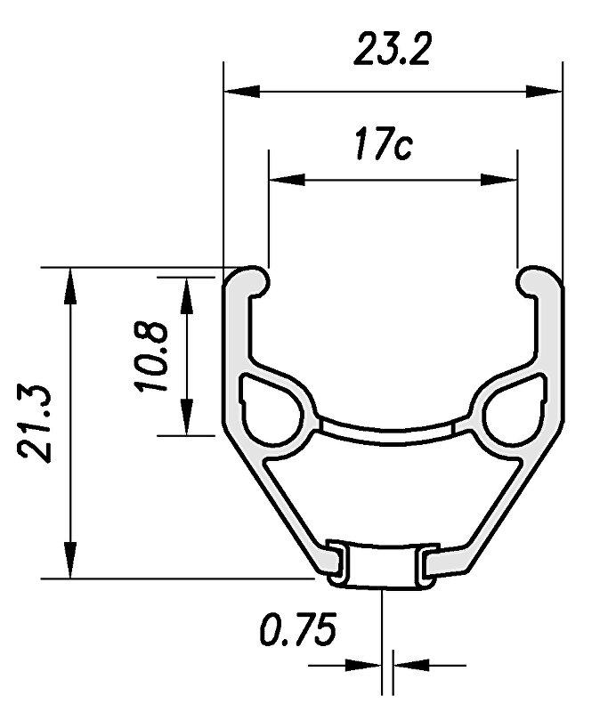Vnitřní šířka ráfku činí 25 mm, zatímco vnější šířka je 32 mm a výška 20 mm, což umožňuje použití pneumatik o šířce 44 až 64 mm. Díra pro ventil má průměr 8,5 mm, což je standardní velikost pro většinu ventilků.