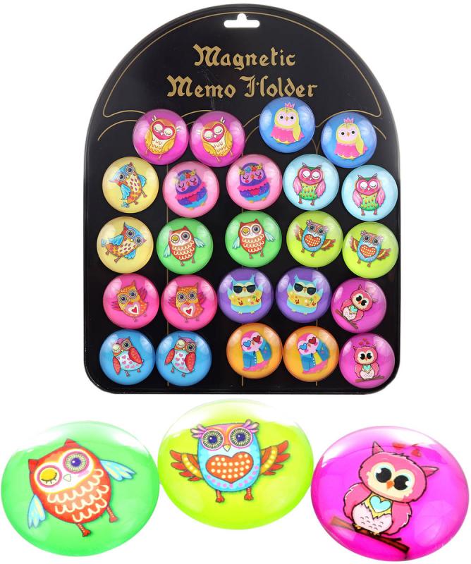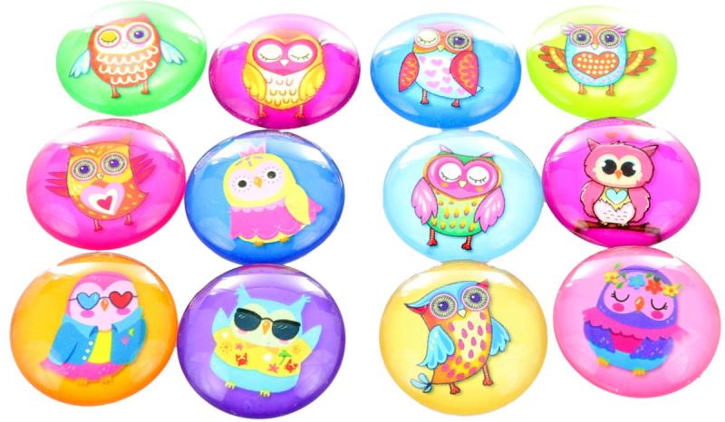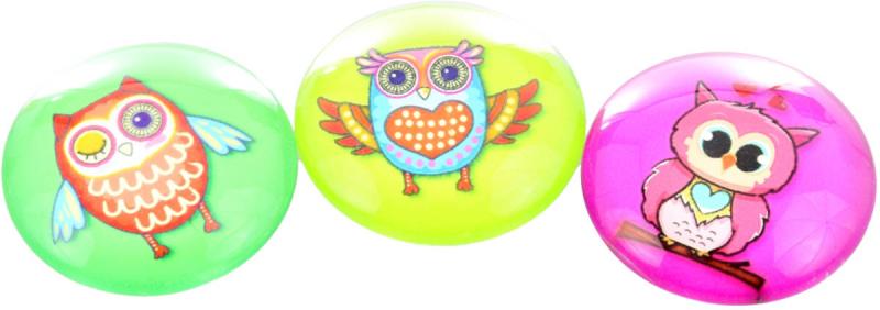 Magnetky dětské kulaté sovičky samostatné 4cm různé druhy