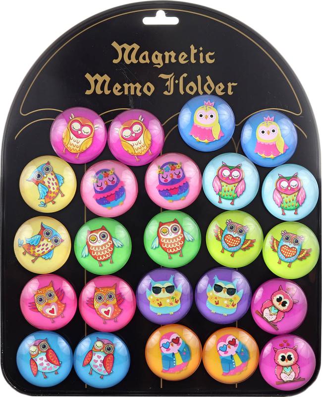 Megnetky s motivem veselých soviček. Rozměr magnetu cca 4cm. Výrobek je určen k dekoraci. Různé druhy. Nabízíme po 1 kuse. Magnetka sovička.Magnetky pěkně ozdobí ledničku, tabule, tabulky a jiné kovové předměty. Fantazii se meze nekladou.