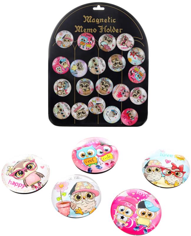 Magnetky kulaté dětské sovičky samostatné 4cm různé druhy