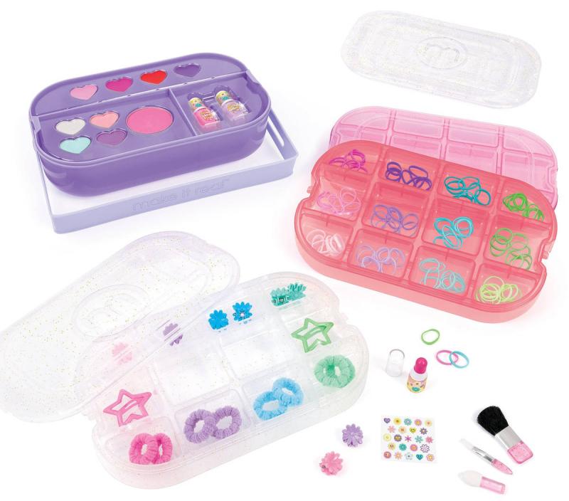 Vezmi svůj styl kamkoli s tímto roztomilým, kompaktním vícepatrovým kufříkem na kosmetiku a doplňky do vlasů! S čtyřmi úrovněmi zábavy při líčení a úpravě vlasů obsahuje tato sada vše potřebné pro vytvoření úžasných looků. Navíc je zde extra místo, kam si mladé návrhářky mohou uložit své oblíbené kousky, takže je ideální pro módní nadšenkyně na cestách.