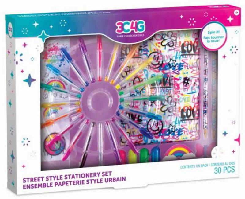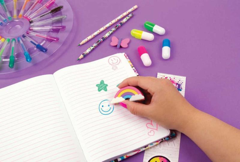 Velká otočná sada kancelářských potřeb obsahuje blok, 20 mini gelových per, 2 gumy, 2 barevné tužky, 4 zvýraznovače a 4 vinylové samolepky.Rozměry balení (š v h): 41 x 30 x 4cm