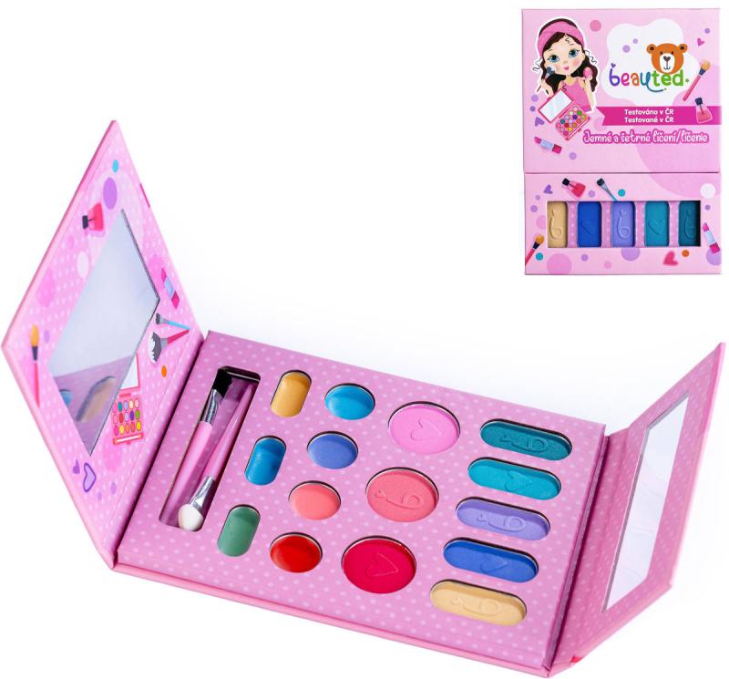 Makeup Beauted dětská sada líčidel, šminky / malovátka, paletka se zavíráním na magnet, součástí zrcátko, oční stíny, tvářenka, barvy na rty a aplikátory.Vítejte v hravém a bezpečném světě kosmetiky značky beauted. Malé holčičky se začínají seznamovat se světem krásy již od raného dětství a brzy je zajímá vše, co jejich maminky používají. Značka beauted je k objevování kosmetiky jako stvořená. Produkty této řady jsou navrženy tak, aby byly hlavně bezpečné, ale také hravé a inspirativní. Podpoří kreativitu a představivost, umožní rozvíjet a formovat smysl pro estetiku a krásu. Ať už vaše děti chtějí zazářit jako v pohádce nebo si jen tak hrát, značka beauted jim pomůže udělat každý okamžik v jejich dětství ještě více nezapomenutelným. Jejich den se může proměnit v zábavnou cestu do světa barev a lesku.