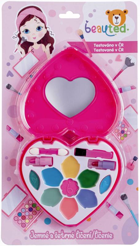 Makeup Beauted dětská sada líčidel, šminky / malovátka, paletka ve tvaru srdce, součástí zrcátko, rtěnka, oční stíny, tvářenka, barvy na rty a aplikátory.Vítejte v hravém a bezpečném světě kosmetiky značky beauted. Malé holčičky se začínají seznamovat se světem krásy již od raného dětství a brzy je zajímá vše, co jejich maminky používají. Značka beauted je k objevování kosmetiky jako stvořená. Produkty této řady jsou navrženy tak, aby byly hlavně bezpečné, ale také hravé a inspirativní. Podpoří kreativitu a představivost, umožní rozvíjet a formovat smysl pro estetiku a krásu. Ať už vaše děti chtějí zazářit jako v pohádce nebo si jen tak hrát, značka beauted jim pomůže udělat každý okamžik v jejich dětství ještě více nezapomenutelným. Jejich den se může proměnit v zábavnou cestu do světa barev a lesku.