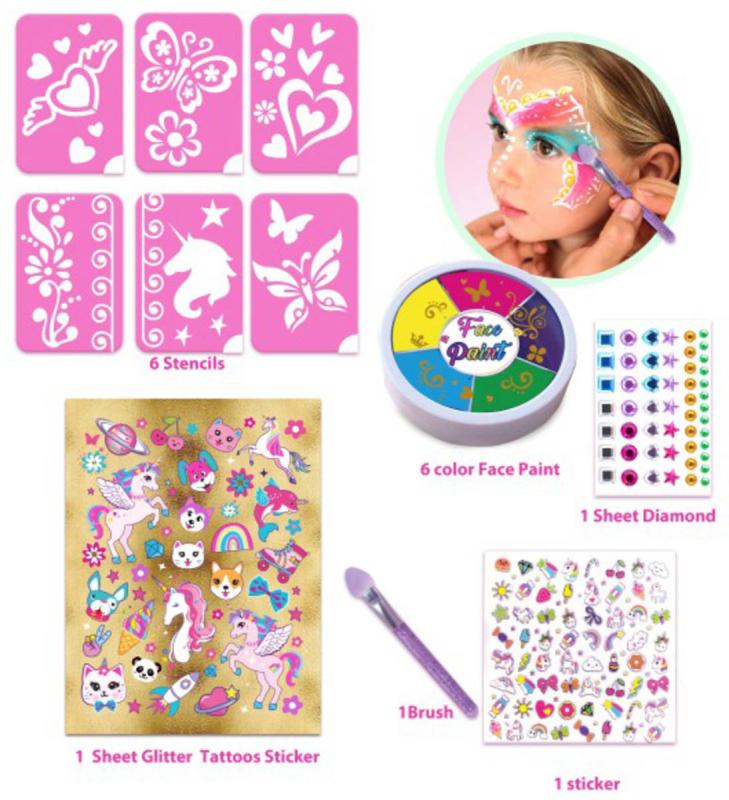 Malování na obličej set třpytivé tetování s barvičkami a samolepkami