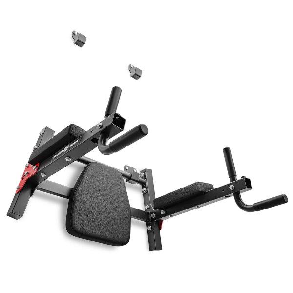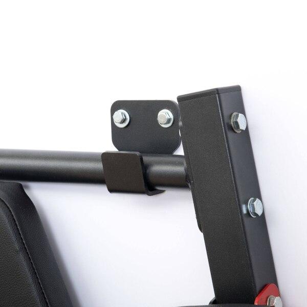 Hrazda sa vkladá do profilov, ku ktorým sú pripevnené lakťové opierky, a zabezpečuje sa skrutkami s ergonomickým úchopom pre dotiahnutie bez použitia náradia. Šírka hrazdy je 107 cm a uprostred nájdeme oko pre zavesenie boxovacieho vreca.