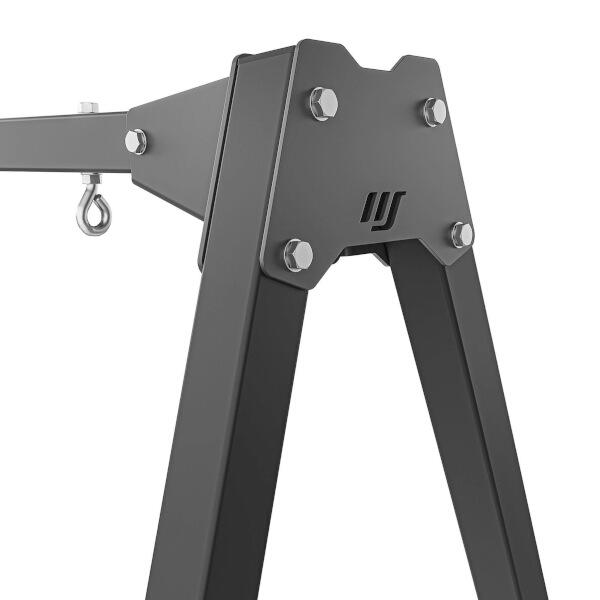 Toto riešenie tiež umožňuje pohodlne používať viac príslušenstva. Jeden rám môžete ľahko použiť napríklad na záhradnú hojdačku, brazílske kreslo, závesný posilňovací systém, lano na šplhanie alebo boxovací vak.