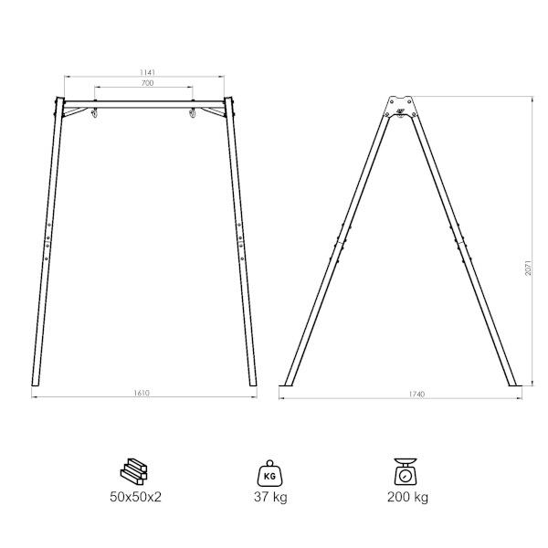 Ponúkaný výrobok je vysoko kvalitná, odolná a bezpečná konštrukcia z oceľových profilov s prierezom 50x50x2 mm zaručuje nosnosť až 200 kg.