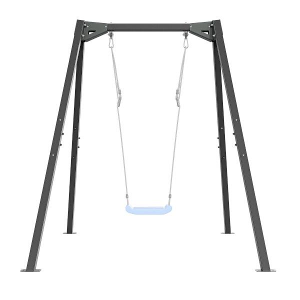 V patkách rámu jsou kotevní otvory - ukotvení konstrukce k zemi zvyšuje stabilitu a zabraňuje pohybu houpačky. Ukotvení zahradní houpačky do země také umožní rovnoměrné rozložení zatížení, což dále chrání půdu, na které konstrukce stojí. Houpačka MARBO Sport je zcela bezpečná i bez ukotvení - nohy jsou zakončeny profilovaným plechem, který umožňuje stabilní umístění rámu na zemi.