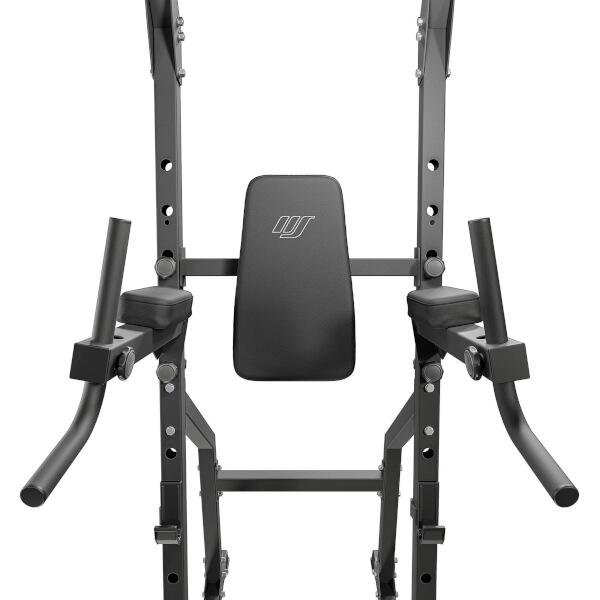 Konstrukce MS-U110 2.0 je vybavena háky, které vám umožní pohodlně odložit činku do optimální výšky pro právě prováděný cvik a zároveň získat lepší výchozí pozici pro další sérii. Háky lze nastavit do 9ti úrovní v rozsahu od 51 do 141 cm od země. Ať už trénujete benchpress, dřepy s činkou nebo mrtvé tahy, budete moci činku po každém cviku pohodlně odložit.
