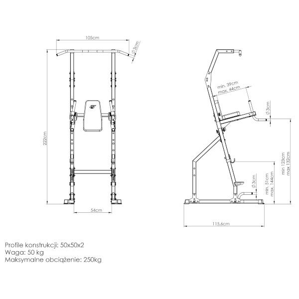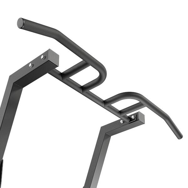 Rozvíjejte svou sílu a formujte svalstvo horní poloviny těla pomocí nastavitelných madel pro DIPy. Ergonomická madla s protiskluzovým povrchem zaručují bezpečný úchop i při intenzivním tréninku. Výšku madel lze pohodlně nastavit do 2 poloh podle výšky cvičence - 123 a 132 cm od země.
