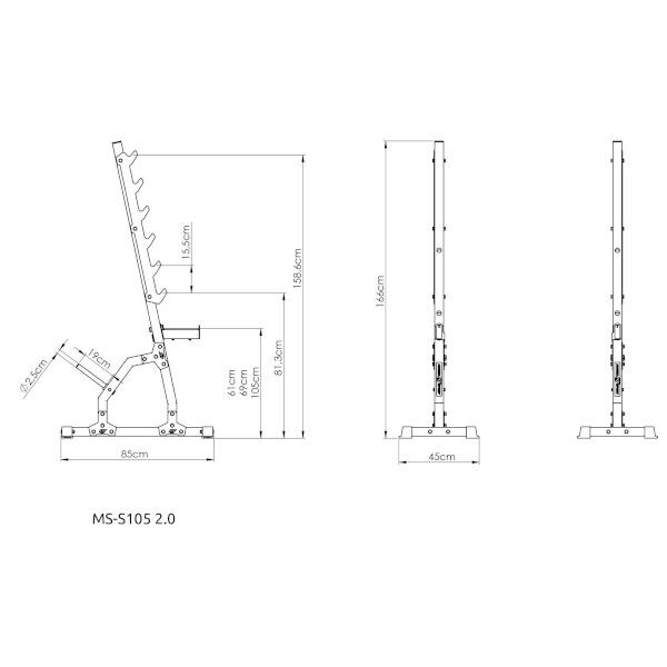 Víceúrovňové stojany MS-S105 2.0 od Marbo Sport jsou skvělou oporou pro celkový silový trénink. Umožní bezpečně provádět širokou škálu cviků s činkou a zajistí potřebnou oporu. Konstrukce stojanů MS-S105 2.0 byla navržena s důrazem na stabilitu a funkčnost. Díky nim můžete trénovat s činkou na jakékoliv úrovni pokročilosti.