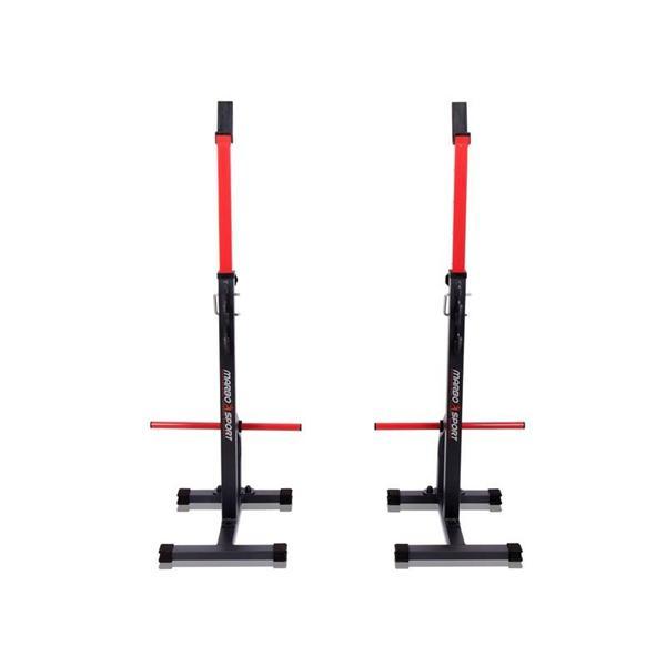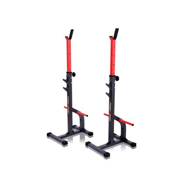 Robustné stojany z ocele s nosnosťou 300 kg a nastaviteľnou výškou pre bezpečné a pohodlné cvičenie s veľkou činkou. zobraziť celý popis