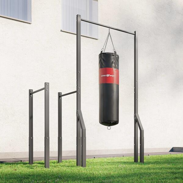 Cvičíte doma s boxovacím vakom? Skvele! Teraz to môžete robiť aj vonku. Univerzálny hák, ktorý je súčasťou balenia, vám to umožní. Môžete naň ľahko zavesiť svoj obľúbený vak alebo akékoľvek ďalšie príslušenstvo - napríklad šplhacie lano.