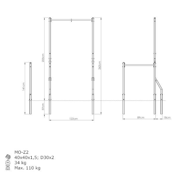 Hrazda je umiestnená vo výške 225 cm a poskytuje pohodlný úchop. Vďaka tomu môžete vykonávať širokú škálu silových a posilňovacích cvikov pre svaly hornej polovice tela. Ide o riešenie pre začiatočníkov aj pokročilých používateľov!