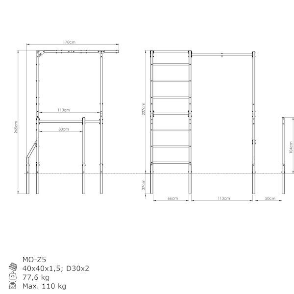 MARBO Venkovní žebřiny s hrazdou a bradly MO-Z5 + doprava zdarma