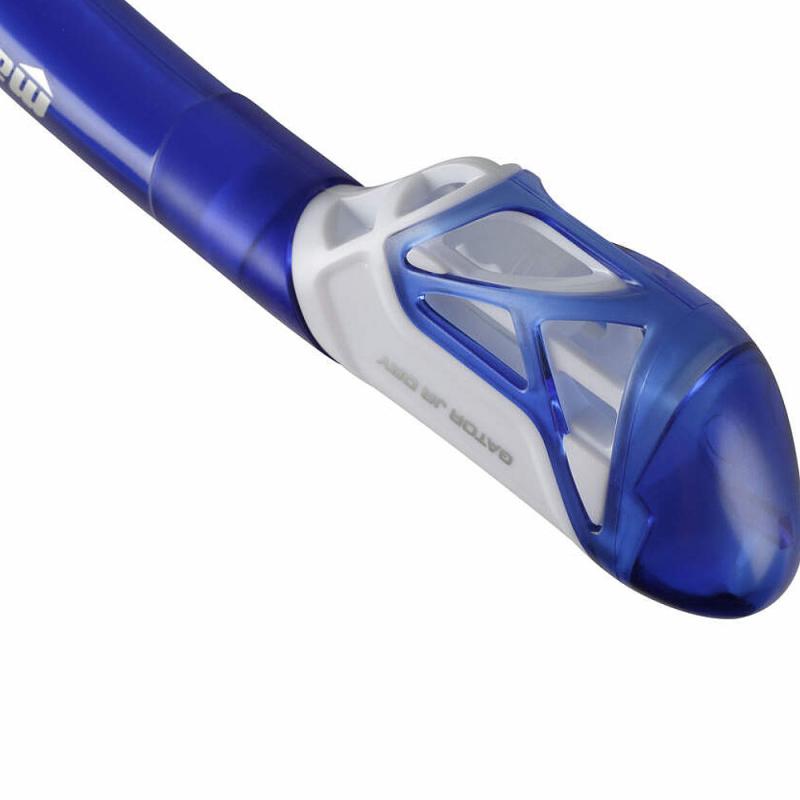 Detský suchý šnorchel od Maresu. Šnorchel na potápanie aj šnorchlovanie disponuje horným vlnolamom, vnútri ktorého sa nachádza plavák. Ten zabezpečí, že pri ponorení dieťaťa pod vodu sa do šnorchelu nedostane voda. Vďaka tomu je suchý. Pre komfortné používanie je tiež opatrený spodným výdychovým ventilom. Ten zase zabezpečuje pohodlné vydýchnutie prebytočnej vody z dýchacej trubice.Silikónový náustok je v ústach pohodlný a netlačí. Všetko je prispôsobené práve juniorom.