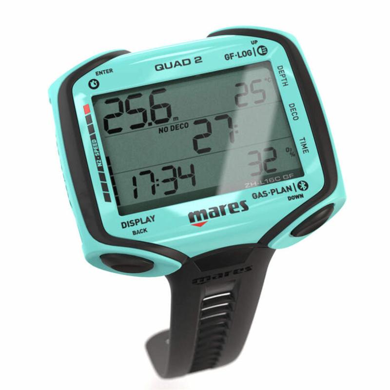 Mares QUAD 2 je potápačský počítač s možnosťou využívať viac plynov. Samozrejmosťou je aj plánovač ponorov s doplnkovou funkciou povrchových intervalov a dlhá životnosť batérie, ktorá je užívateľsky vymeniteľná.