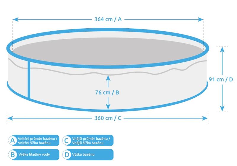 | Vybavení | bez filtrace, bez krycí plachty, bez podložky, bez schůdků, bez skimmeru |