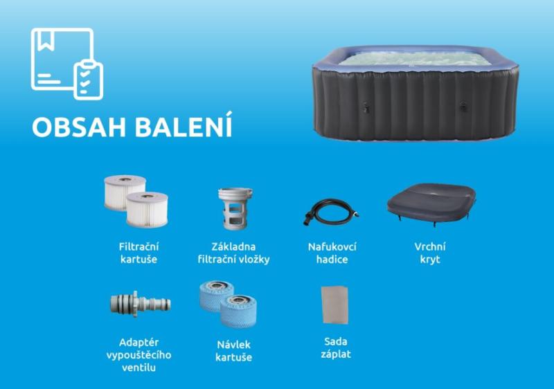 Veľká nafukovacia vírivka až pre 6 osôb. MSpa Tekapo C-TE062 má praktický tvar a bezchybne padne na akúkoľvek terasu či záhradu.Výhodou je 132 vzduchových trysiek a účinný ohrev vody. Vo vnútri ovládacej jednotky je zabudovaná mini sterilizačná komora s UV LED lampou, ktorá zabezpečuje, že každá kvapka vody v Mspa je pod neustálou ochranou.