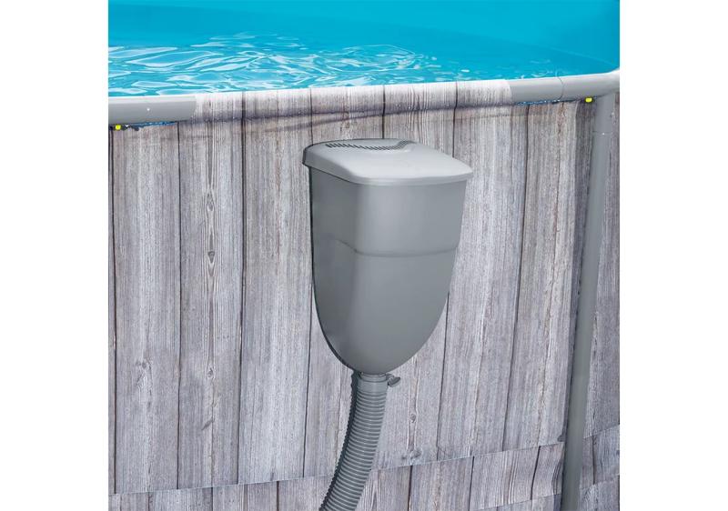 Nadzemní bazén s pevnou kovovou konstrukcí a vestavěným skimmerem umožňuje snadnou montáž, připojení filtrace i vysavače a nabízí možnost zazimování s úsporou vody. zobrazit celý popis