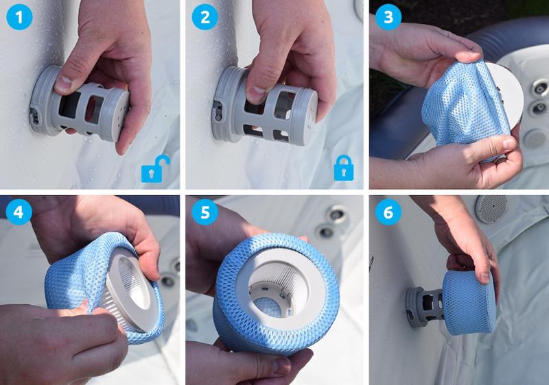 2x filtrační vložka (kartuše) s potahem. Pro fungování vířivky mohou být použity kartuše s potahem i bez potahu.