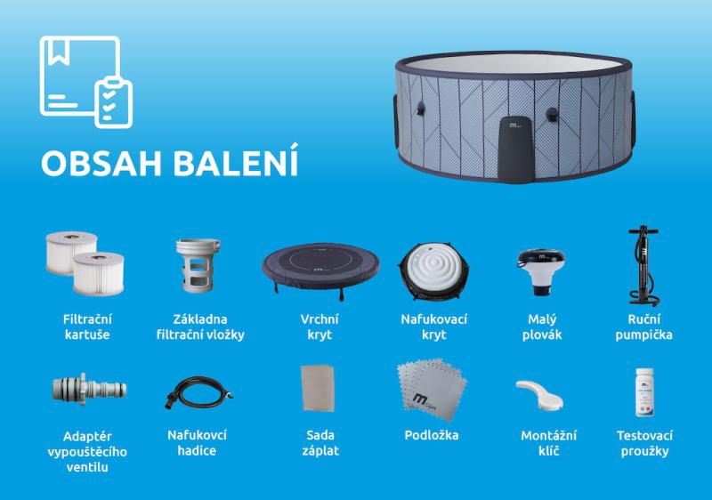 Pro údržbu je určena originální filtrační kartuše pro vířivky MSPA. Vířivku není možné rozšířit o solární ohřev, chlorinátor ani pískovou filtraci.