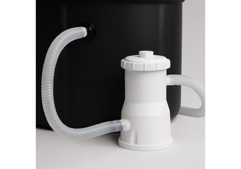 Součástí balení je kartušová filtrace včetně hadic a všech potřebných propojovacích dílů, která se snadno napojuje na průchody stěnou. Filtrace efektivně odstraňuje nečistoty, udržuje vodu průzračnou a zajišťuje pohodlné a hygienické používání bez časté výměny vody.